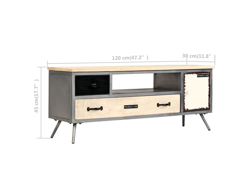 Multidom TV stolík masívne mangovníkové drevo a oceľ 120x30x45 cm