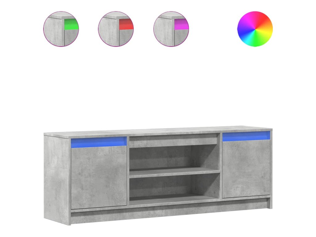Multidom TV stolík s LED betónovosivý 139,5x34x50 cm kompozitné drevo
