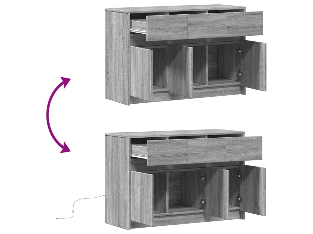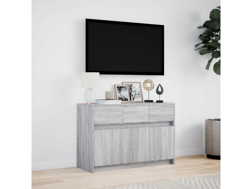 Multidom TV stolík s LED sivý sonoma 91x34x61 cm kompozitné drevo