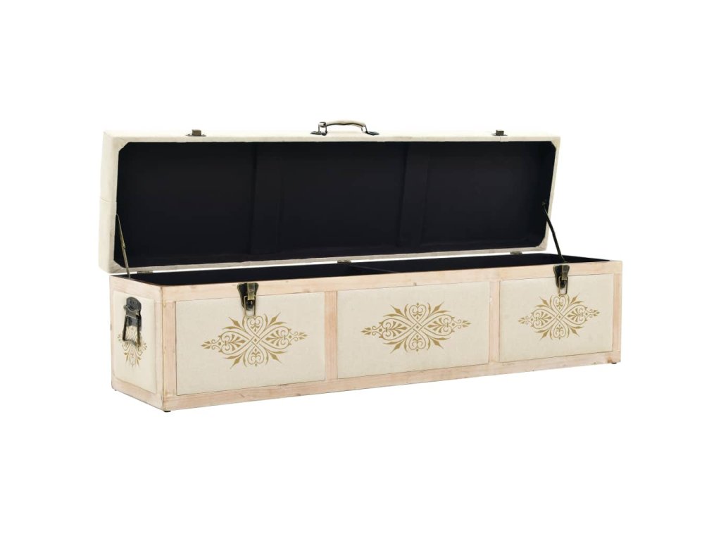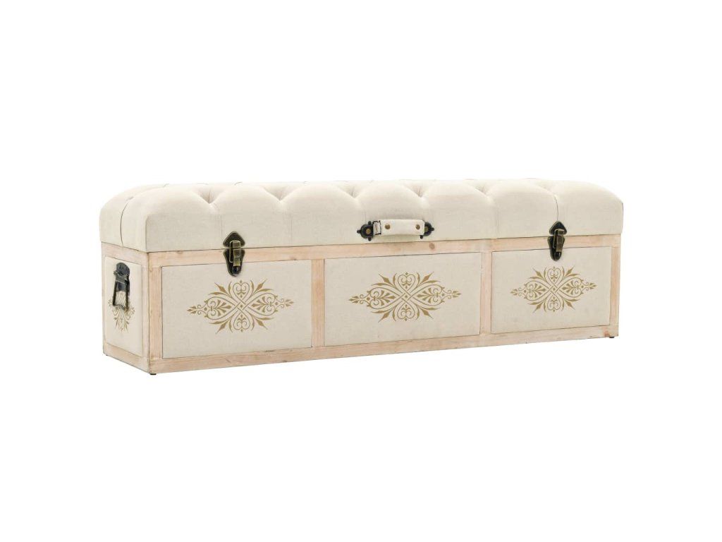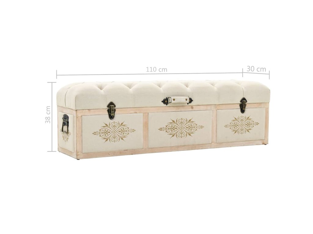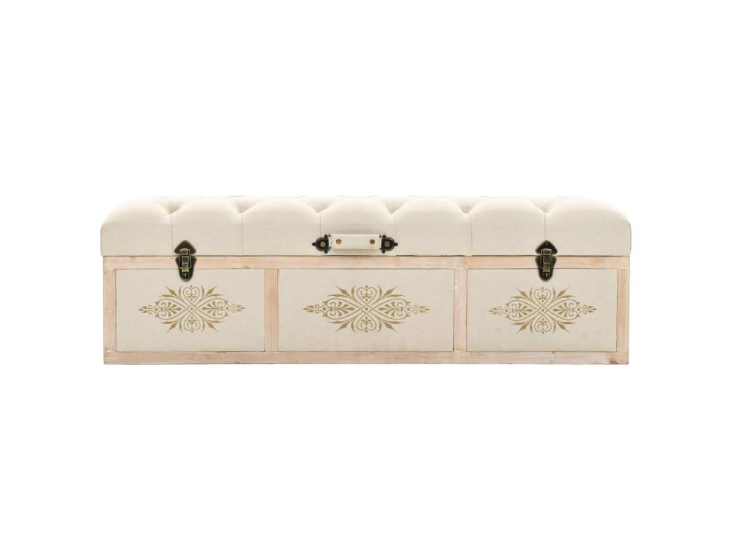 Multidom Úložná lavica 110 cm krémová, masívne jedľové drevo a látka