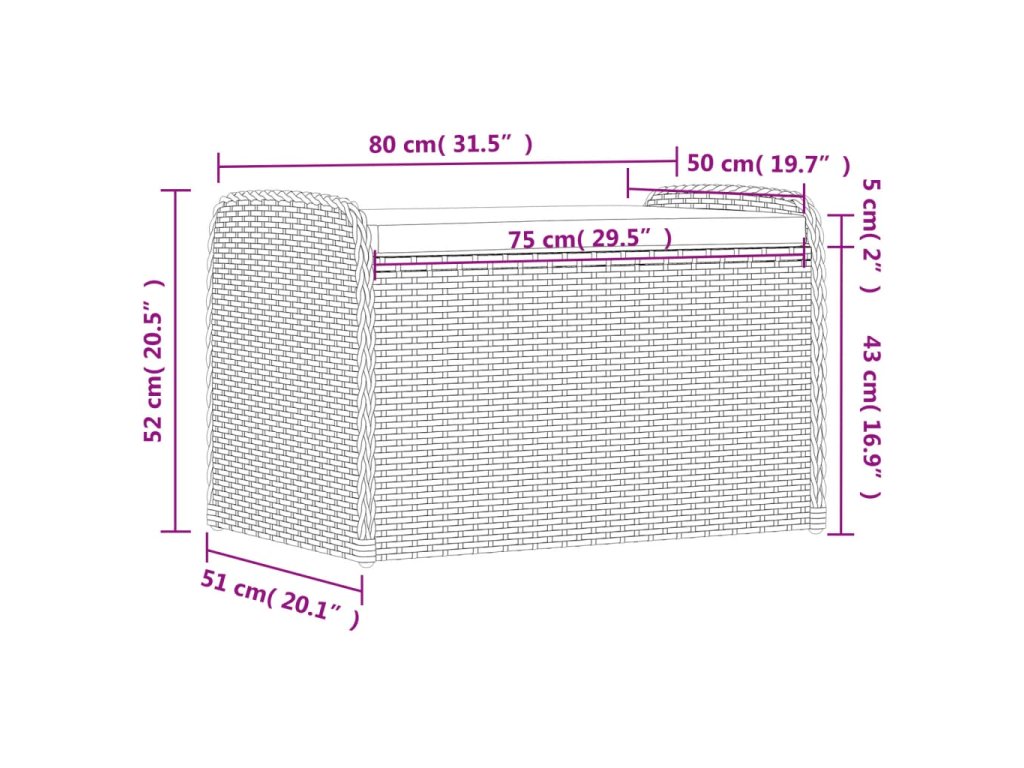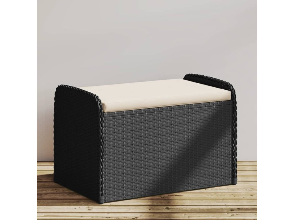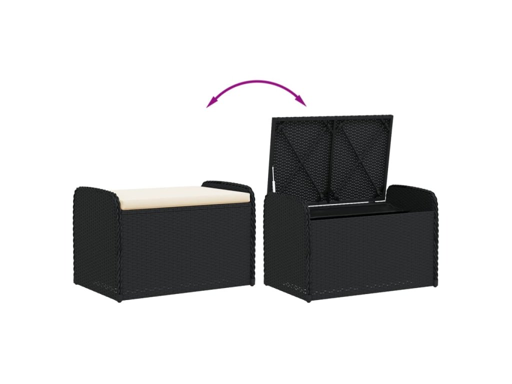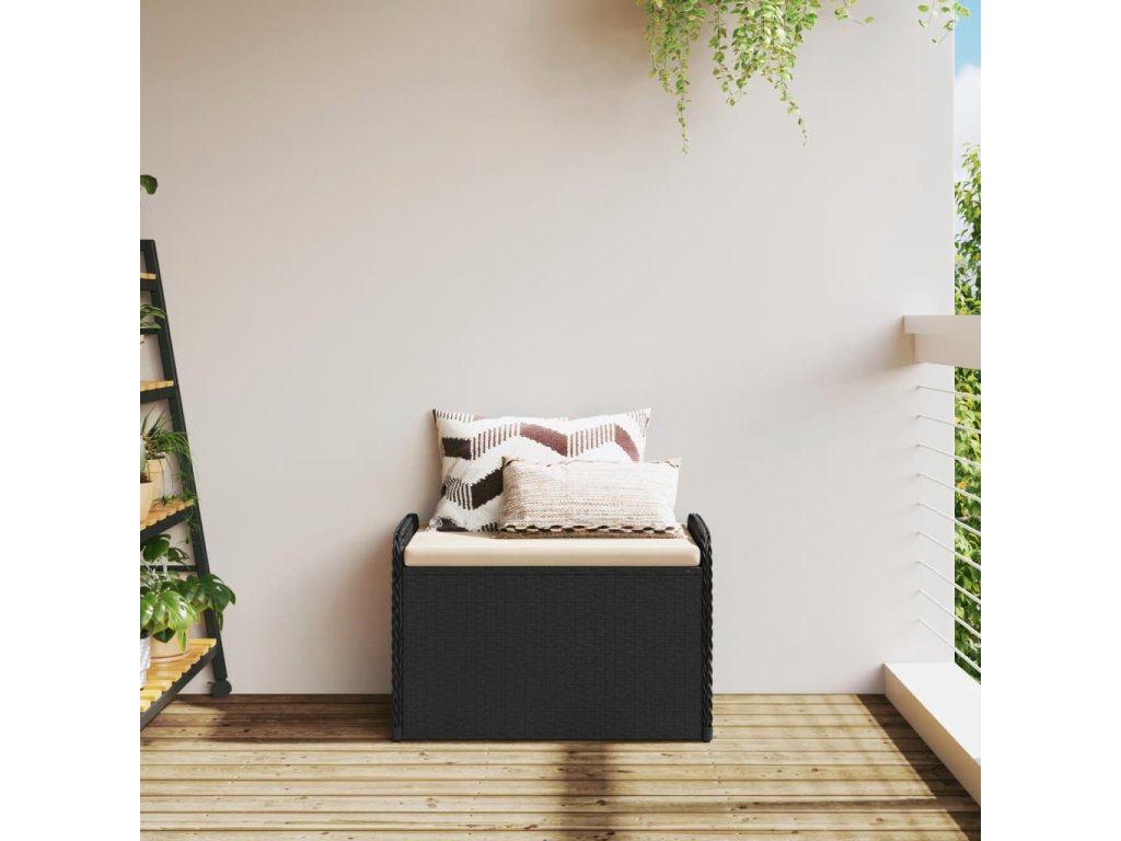 Multidom Úložná lavička s vankúšom čierna 80x51x52 cm polyratan