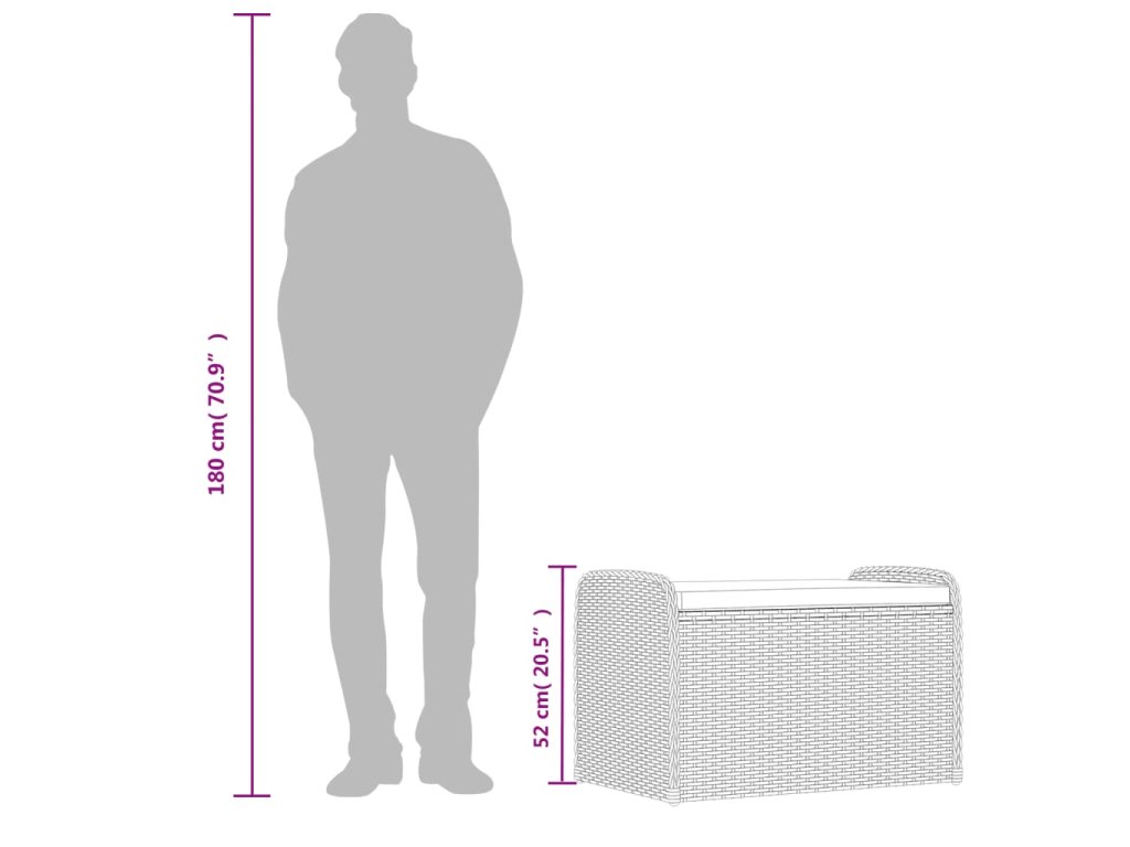 Multidom Úložná lavička s vankúšom hnedá 80x51x52 cm polyratan