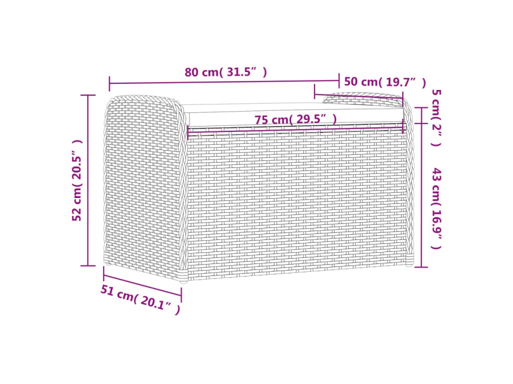 Multidom Úložná lavička s vankúšom sivá 80x51x52 cm polyratan