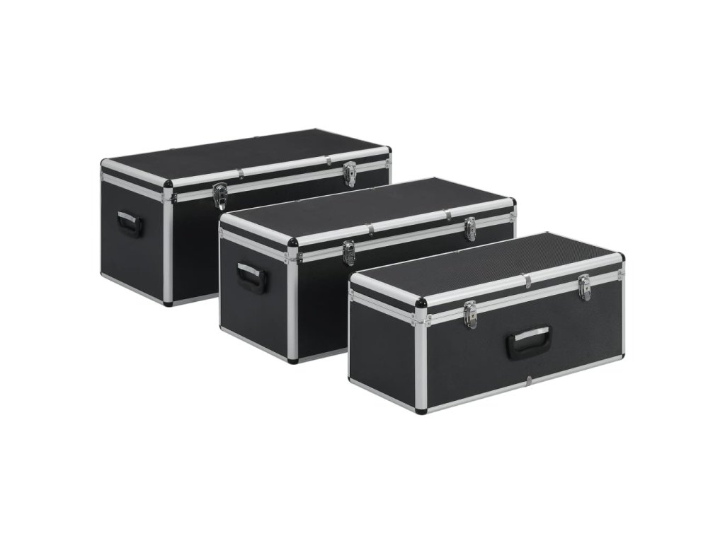 Multidom Úložné kufríky 3 ks čierne hliníkové