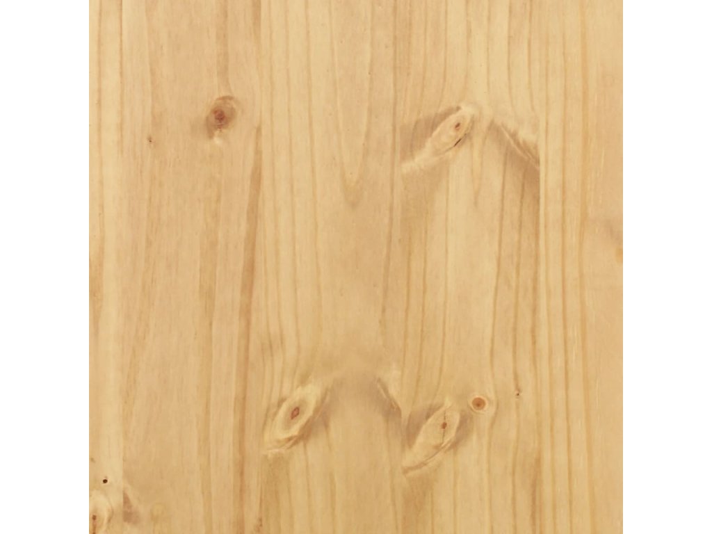 - Borovicový masív: Borovicový masív je krásny prírodný materiál. Borovicové drevo má rovnú kresbu a nachádzajú sa na ňom uzly, ktoré tomuto materiálu dodávajú charakteristický rustikálny vzhľad. Truhlica va deky je vyrobená z masívneho borovicového dreva, a je odolná a pevná.