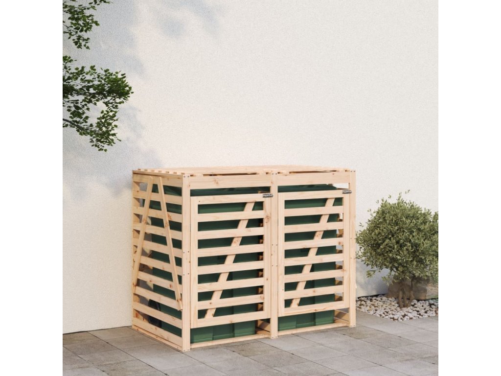 Tento drevený úložný priestor na dva koše na odpadky udrží odpadkový kôš vo vašej záhrade mimo dohľadu a vytvorí krásne a čisté prostredie.