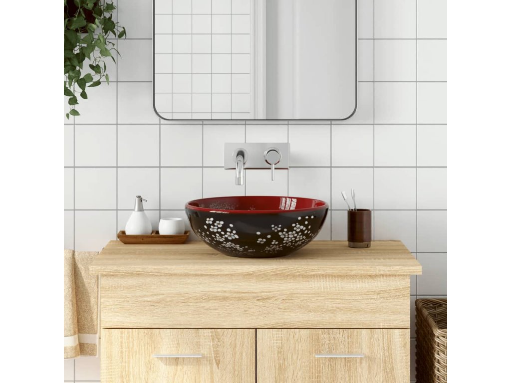 Multidom Umývadlo na dosku čierno-červené okrúhle Φ41x14 cm keramické