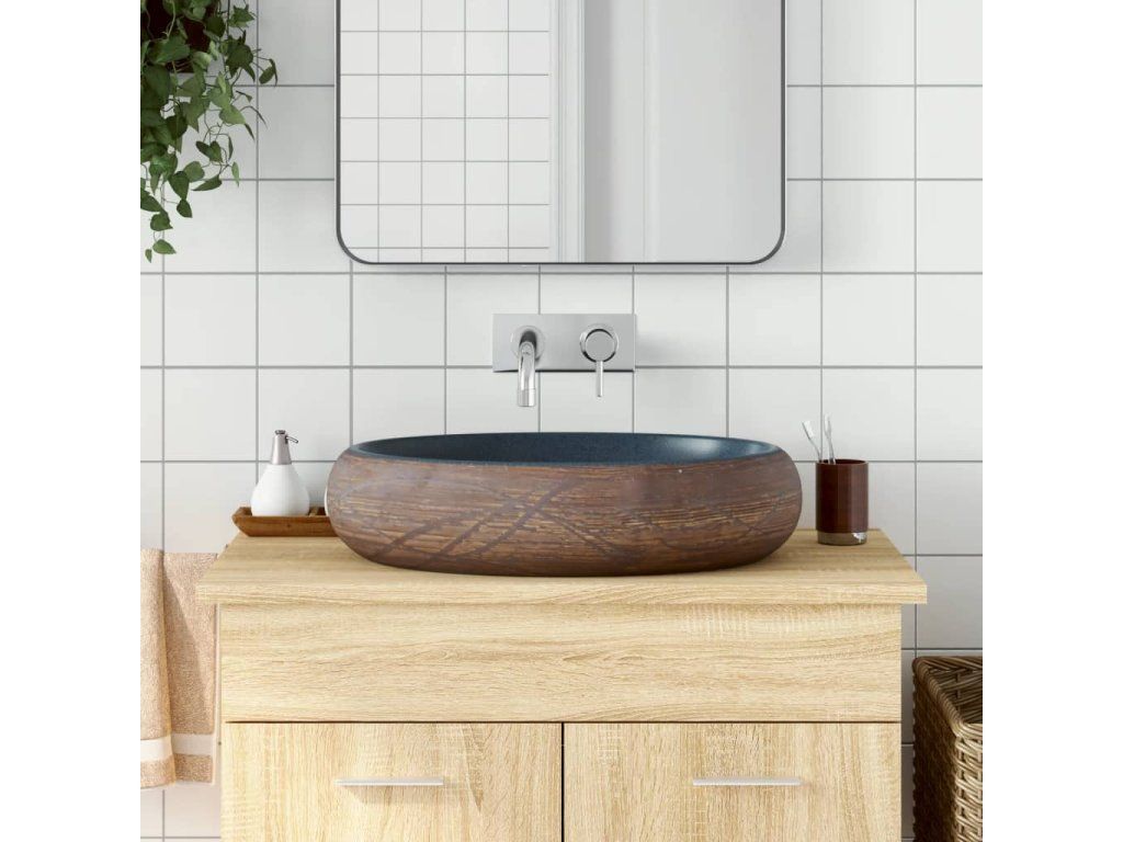 Multidom Umývadlo na dosku čierno-modré oválne 59x40x15 cm keramické
