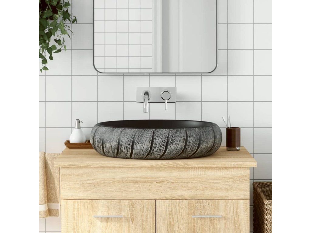 Multidom Umývadlo na dosku čierno-sivé oválne 59x40x15 cm keramické