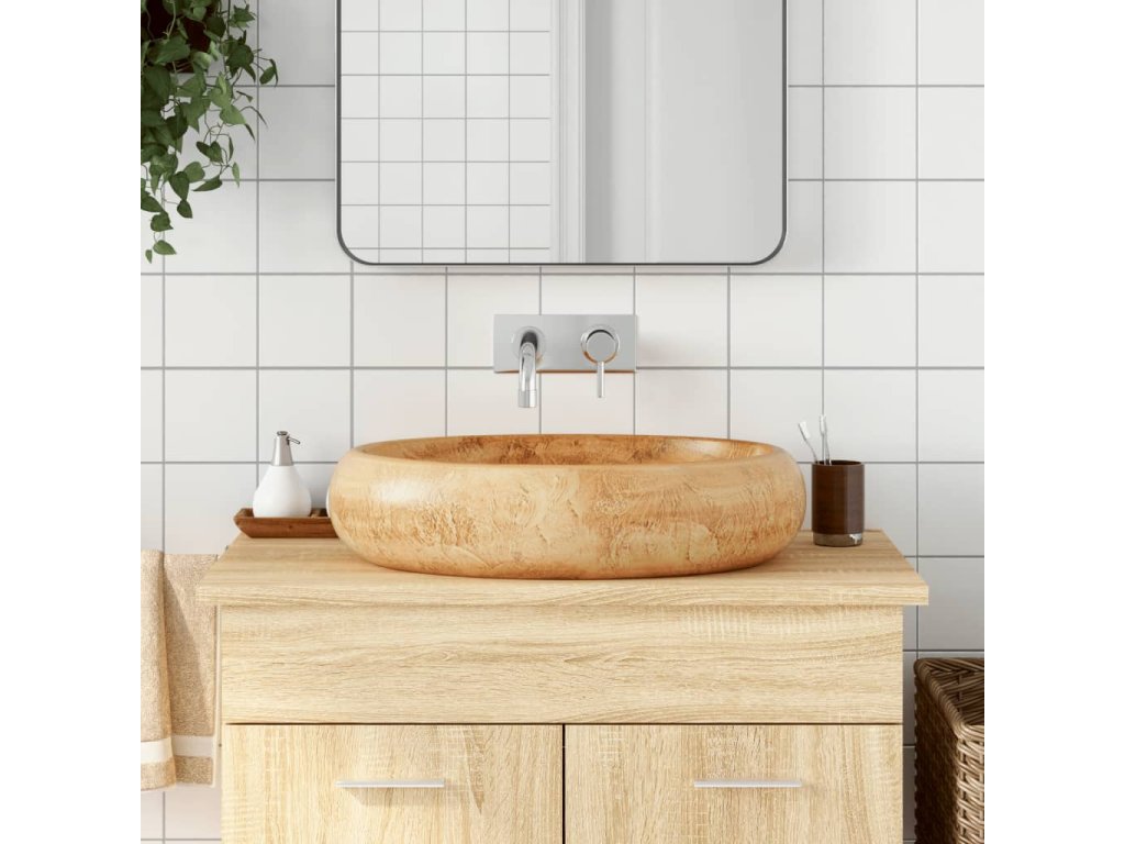 - Odolný materiál: Kúpeľňové umývadlo vyrobené z keramiky má odolný povrch, ktorý odoláva nárazom, škvrnám a škrabancom, a zaisťuje jeho dlhotrvajúci lesk.