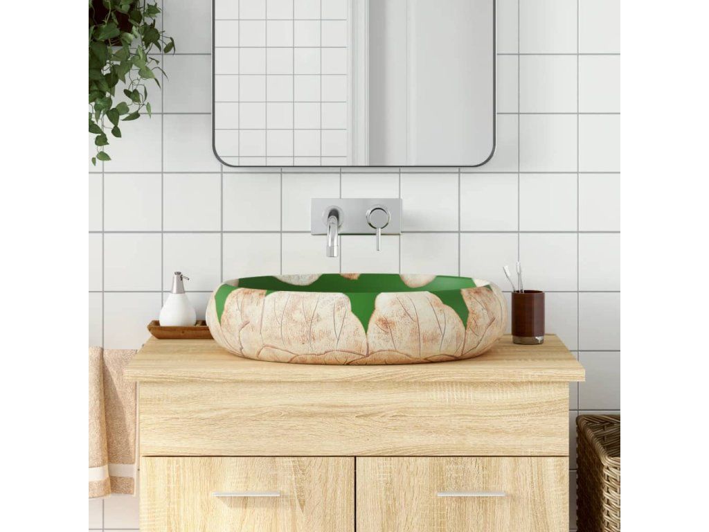 Multidom Umývadlo na dosku zeleno-hnedé oválne 59x40x15 cm keramické