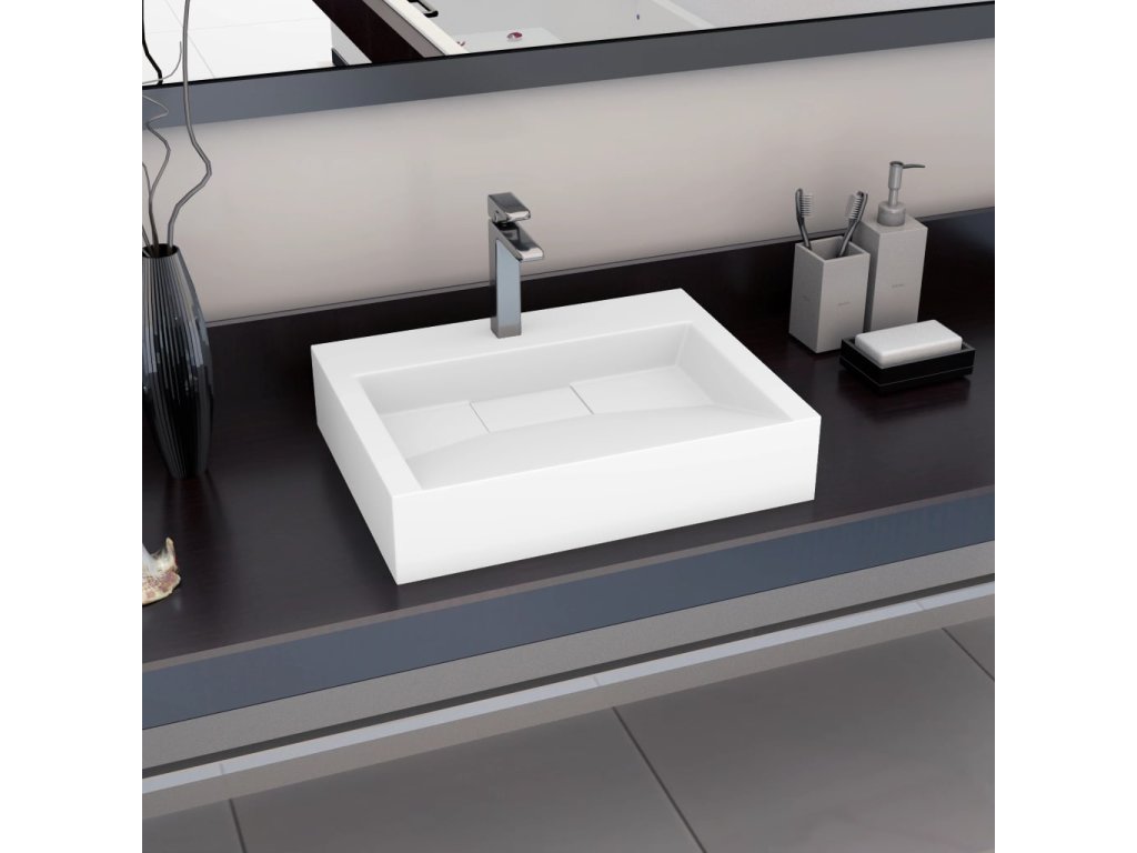 Multidom Umývadlo z minerálneho/mramoroveho odliatku 60x38x11 cm biele