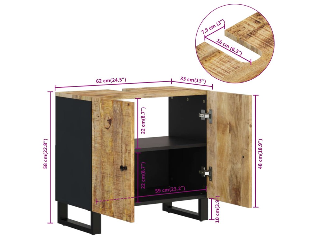 Multidom Umývadlová skrinka 62x33x58 cm mangovník a kompozitné drevo
