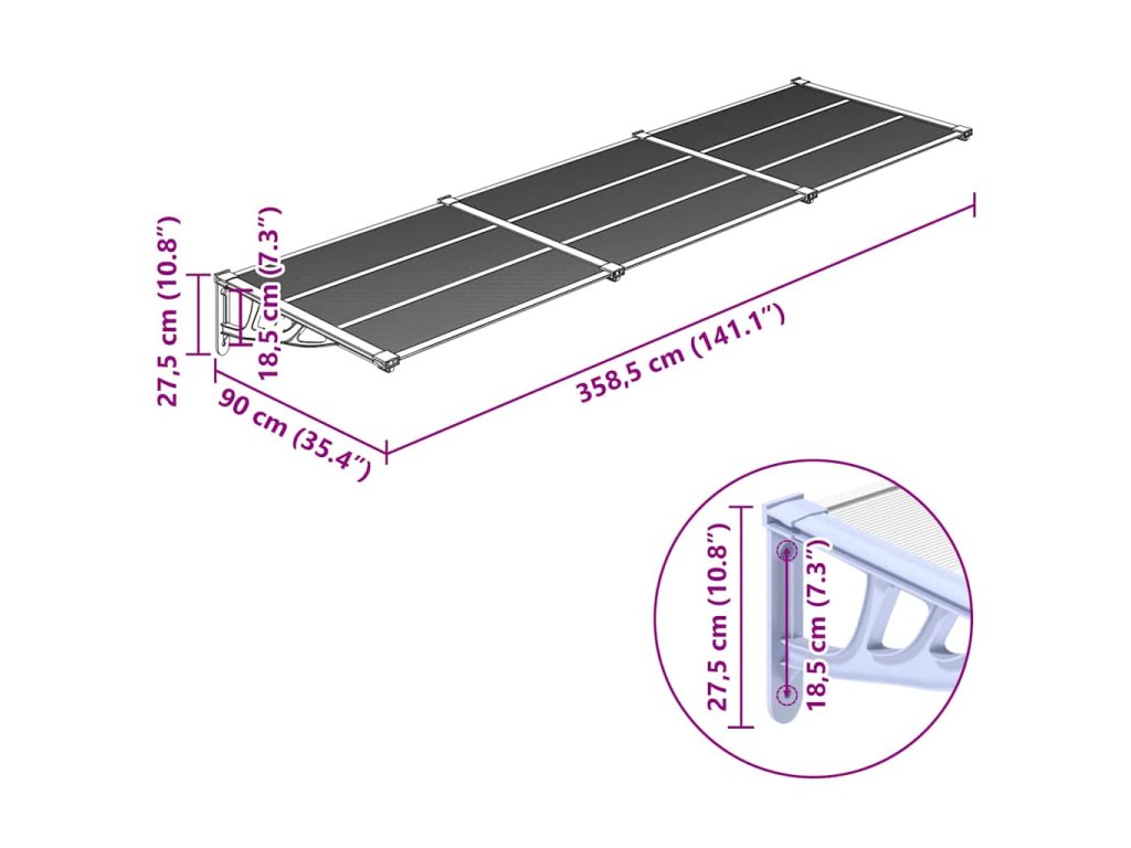 Multidom Vchodová strieška, sivá a priehľadná 358,5x90 cm polykarbonát