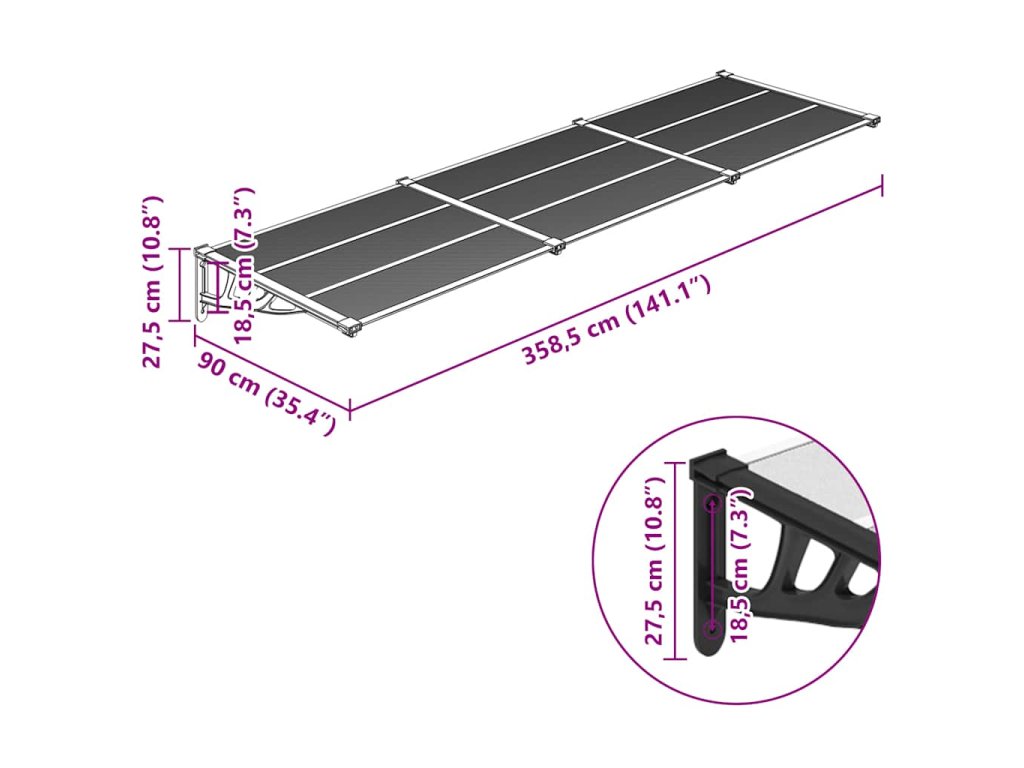 Multidom Vchodová strieška čierna a priehľadná 358,5x90 cm polykarbonát