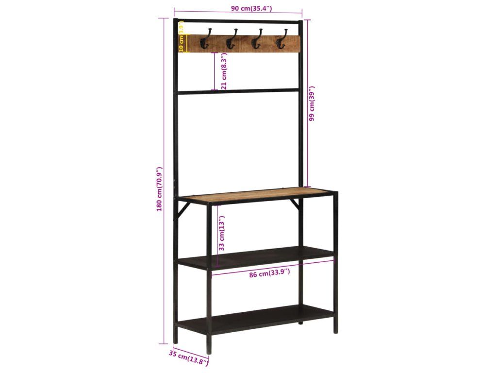 Multidom Vešiak na kabáty 90x35x180 cm masívny mangovník a železo
