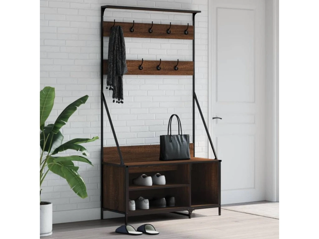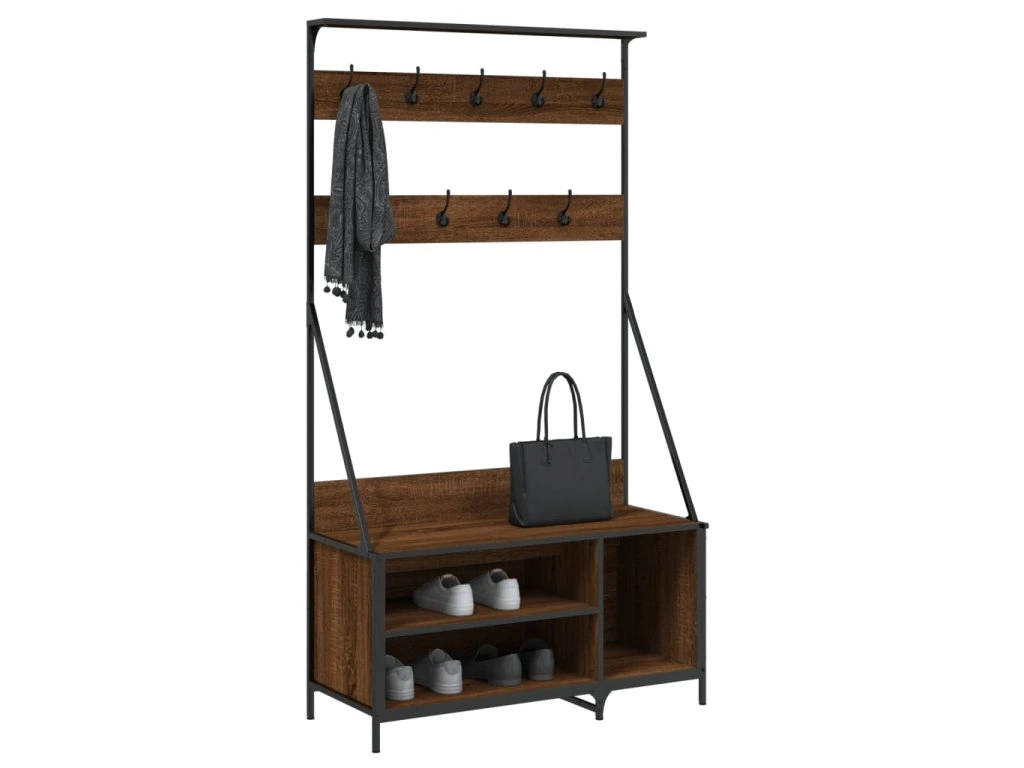Multidom Vešiak na šaty o skrinkou na topánky, hnedý dub 100x41x184 cm