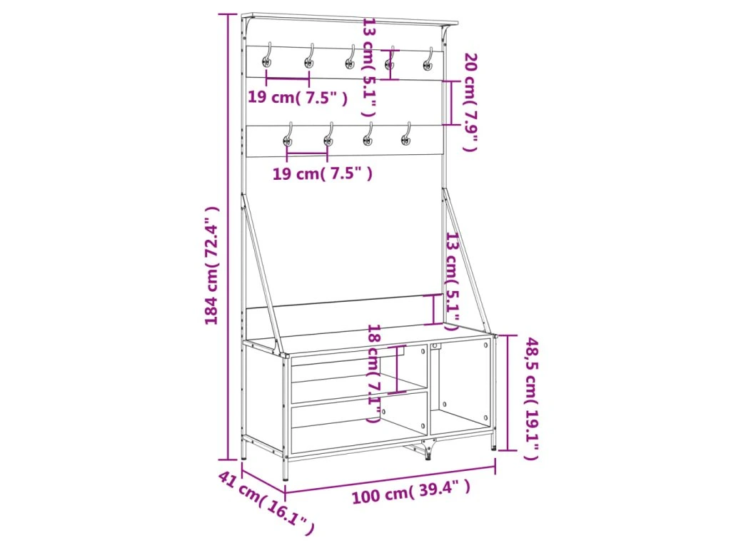 - Dostatok úložného priestoru: Vešiak na kabáty ponúka dostatok úložného priestoru na odkladanie oblečenia a tašiek. Spodný priečinok je ideálny na topánky.