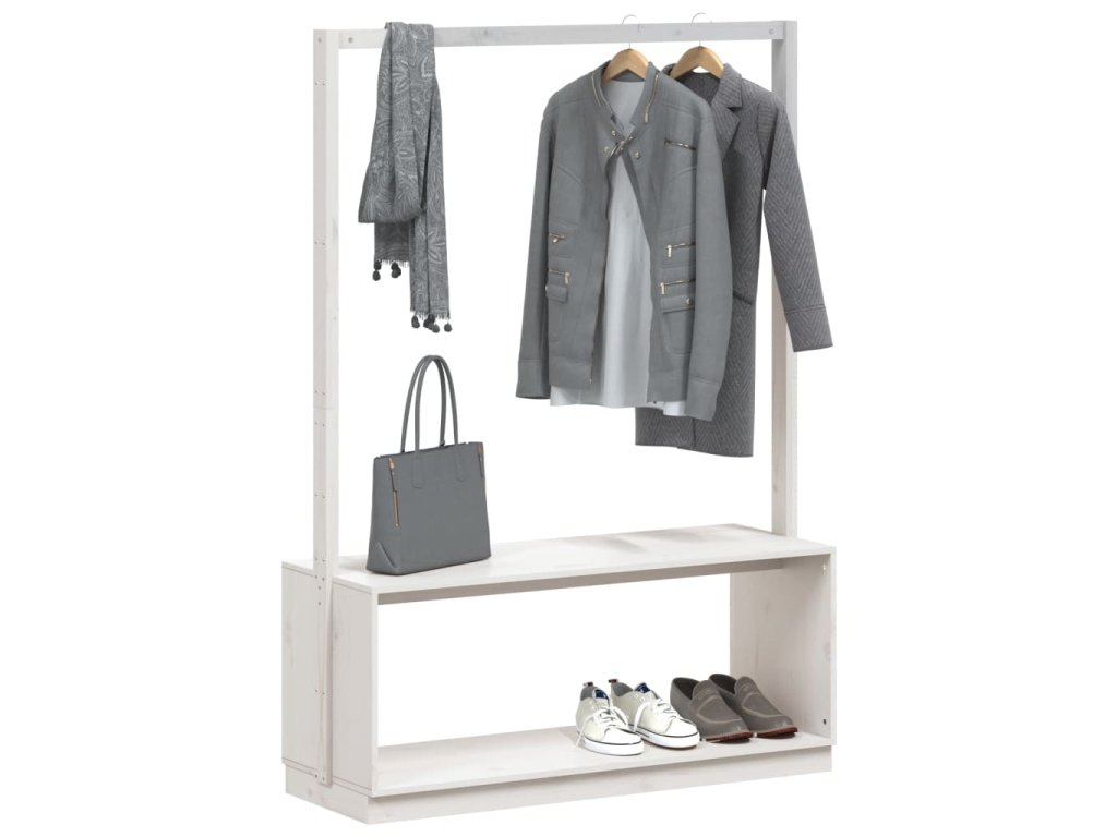 Multidom Vešiak na šaty s botníkom biely 113x40x157,5cm masívna borovica