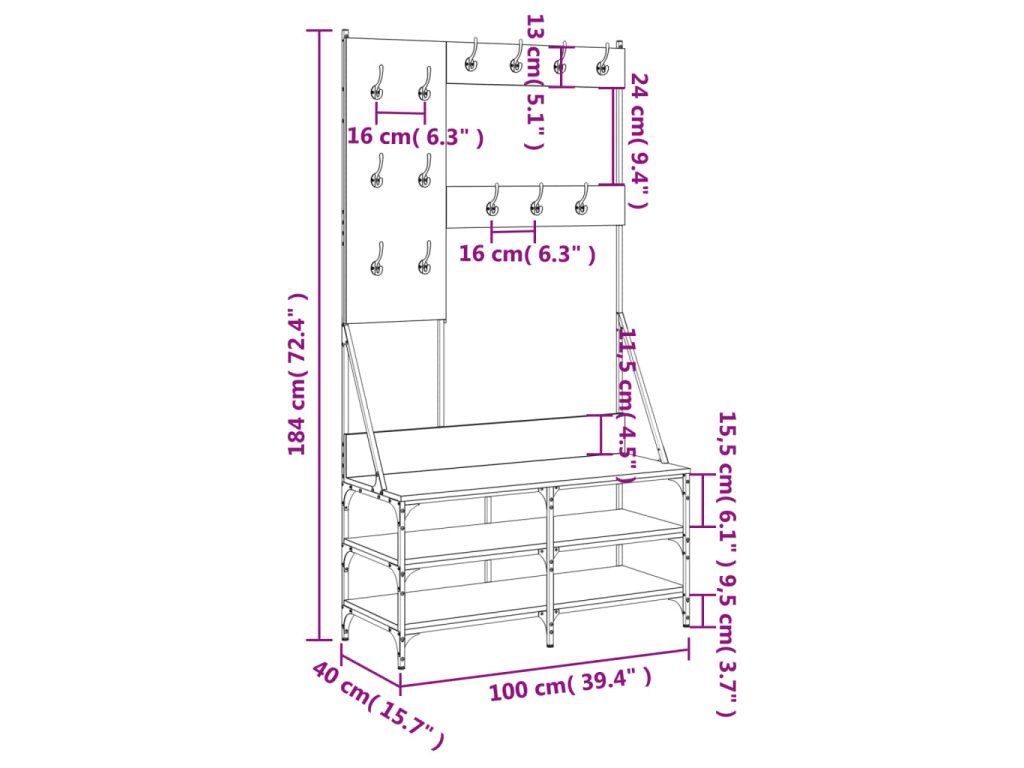 Multidom Vešiak na šaty s botníkom dymový dub 100x40x184 cm