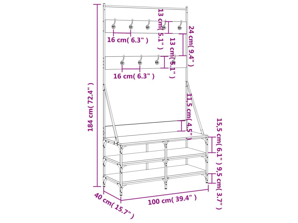 - Dostatok úložného priestoru: Vešiak na kabáty ponúka dostatok úložného priestoru na usporiadanie oblečenia a tašiek. Spodné police sú ideálne na topánky.