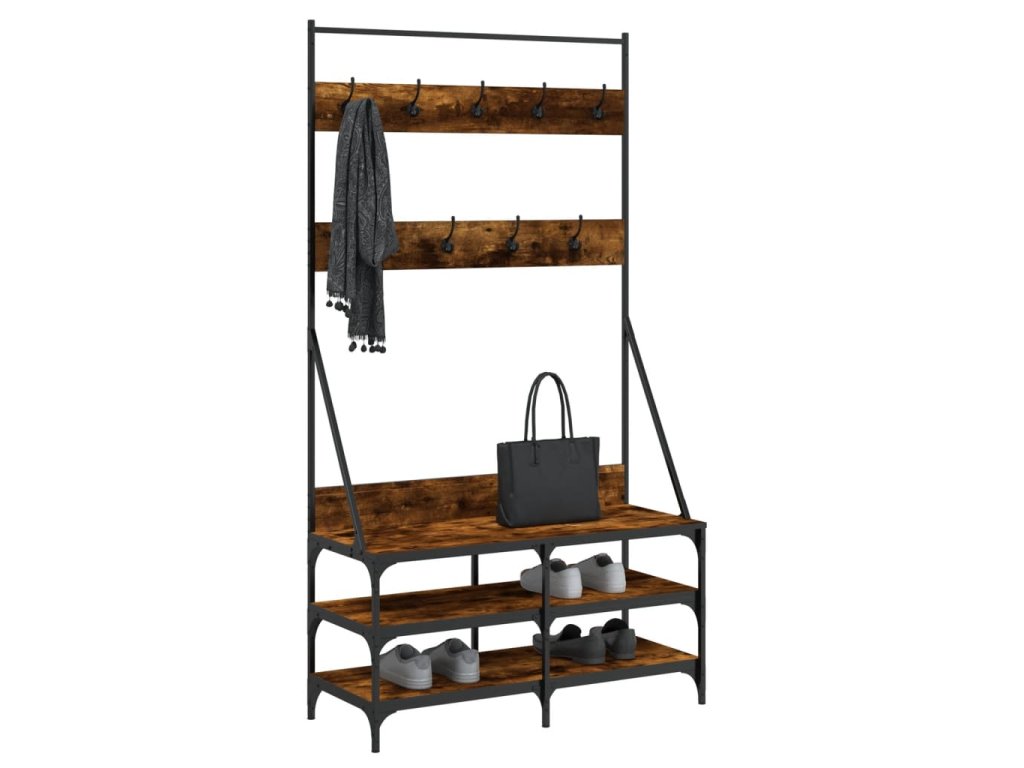 Multidom Vešiak na šaty s botníkom dymový dub 100x40x184 cm