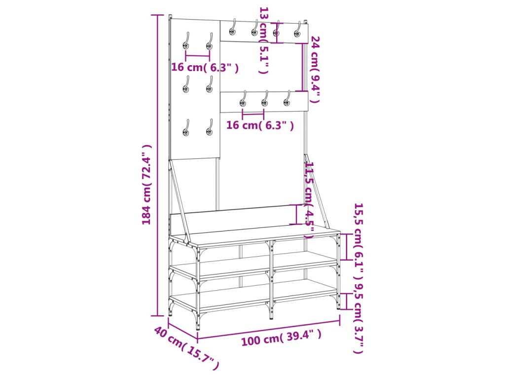 - Dostatok úložného priestoru: Vešiak na kabáty ponúka dostatok úložného priestoru na usporiadanie oblečenia a tašiek. Spodné police sú ideálne na topánky.