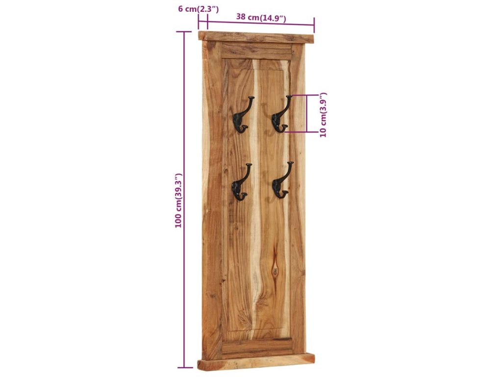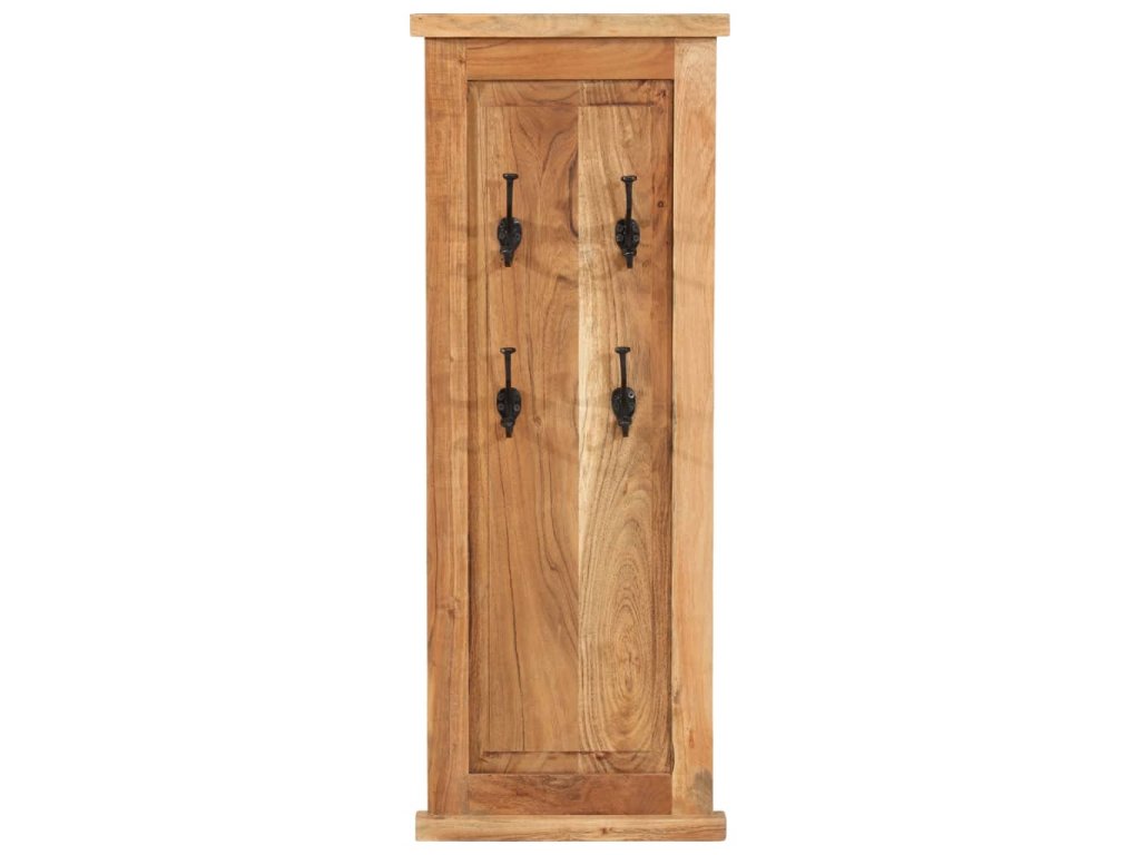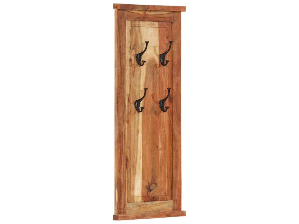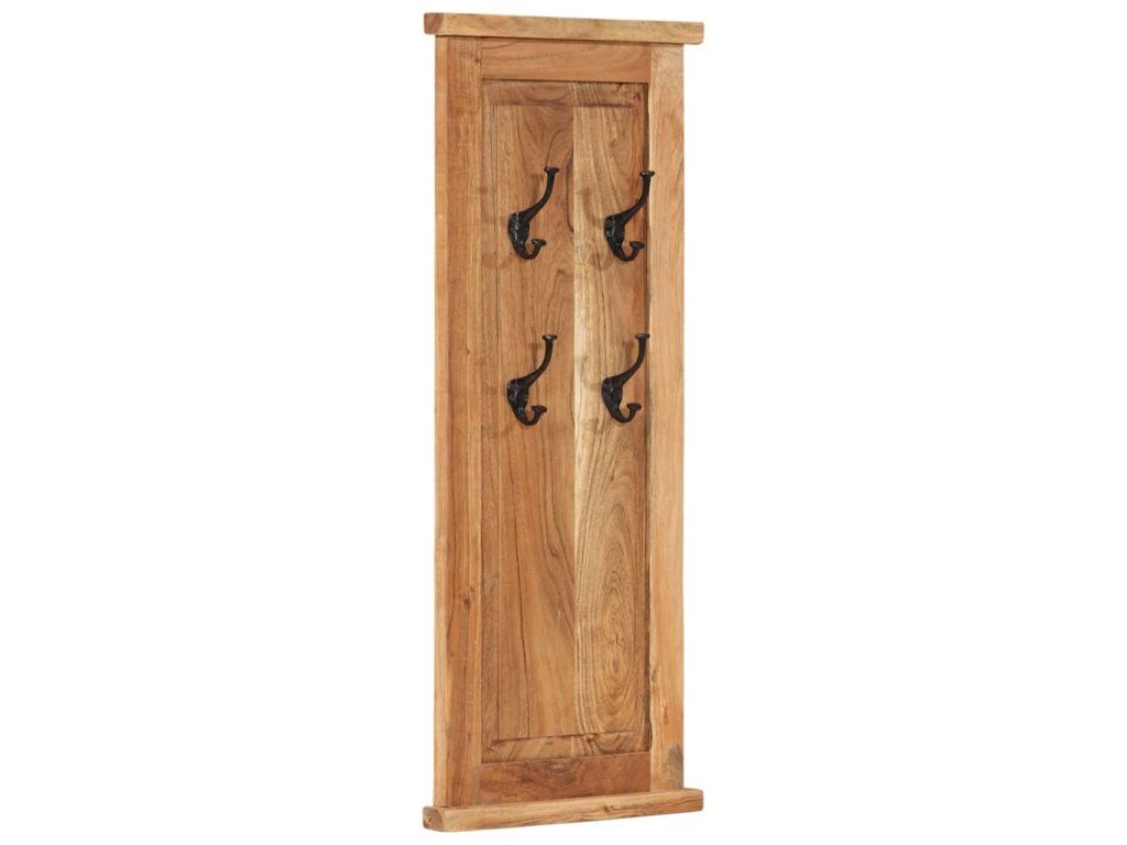 Každý vešiak má 4 háčiky z kovaného železa, ktoré sú skutočne pevné a trvácne. Tieto nadčasové nástenné vešiaky v retro štýle vám poskytnú ideálne miesto na odkladanie kabátov, šálov a čiapok. Vešiaky sú vyrobené z masívneho akáciového dreva a sú veľmi pevné a odolné. Akáciové drevo je tvrdé tvrdé drevo s krásnou štruktúrou, ktorá vydrží dlhé roky. Každý krok procesu výroby je vykonávaný s tou najväčšou starostlivosťou, vrátane leštenia, natierania a lakovania. Vďaka vynikajúcemu remeselnému opracovaniu a krásnej textúre dreva je každý kus nábytku výnimočný a trochu odlišný od ostatných kusov.