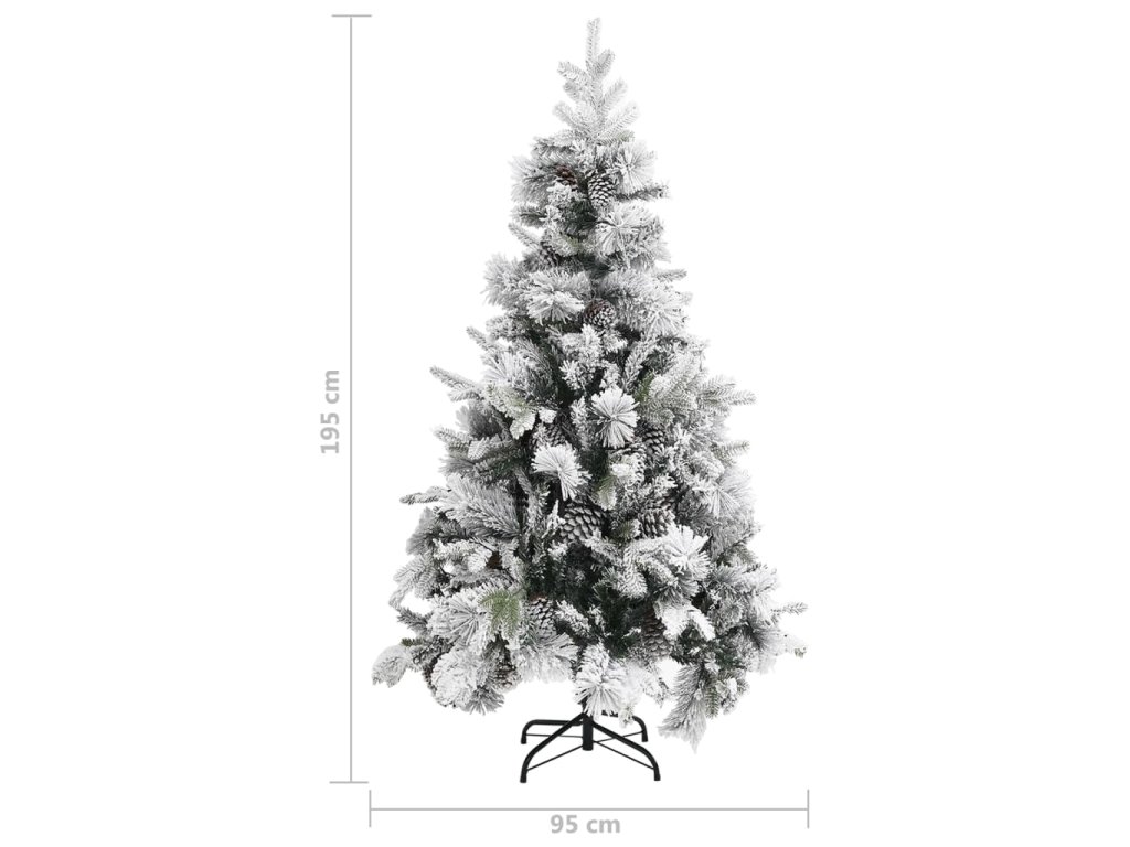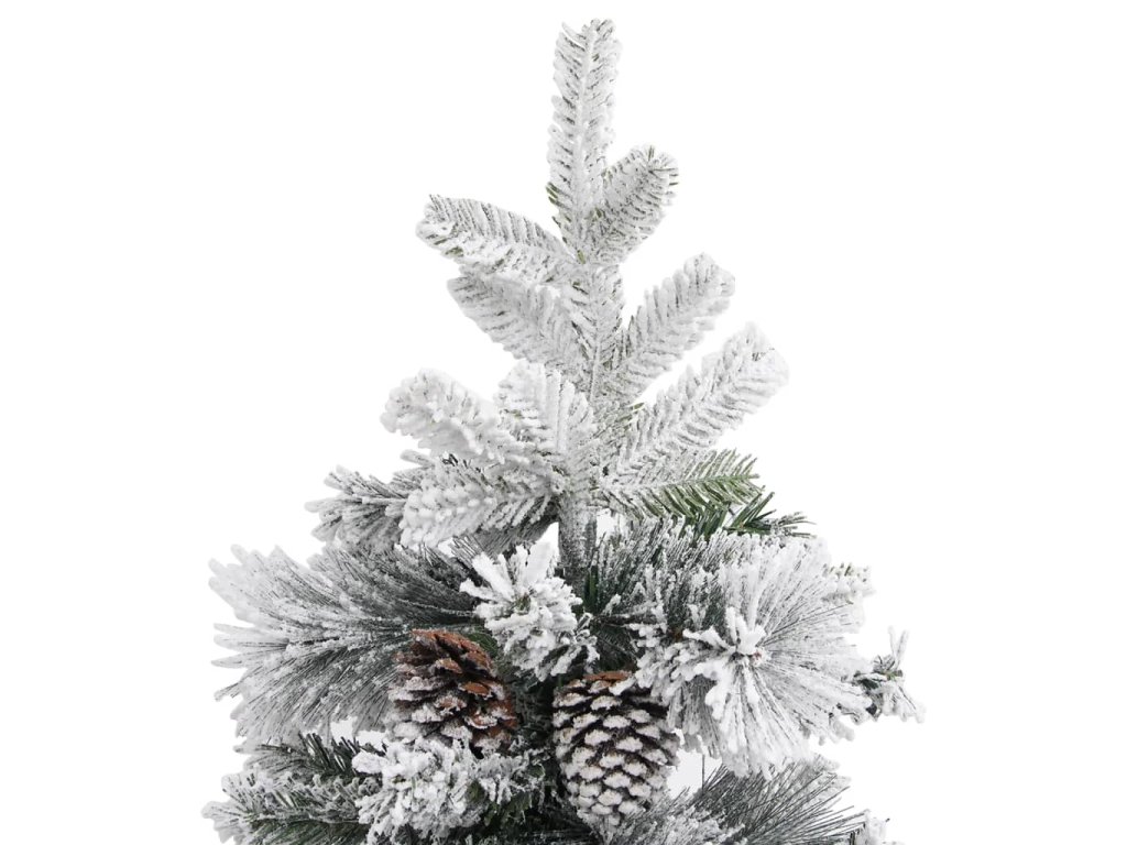 Tento krásny vianočný stromček má vetvičky vyrobené z PVC a PE. Vetvičky stromčeka sú pripevnené na stredovej tyči pomocou kĺbového systému. Vďaka závesom sa vetvy automaticky presunú do správnej polohy. Okrem toho šišky a biely sneh na ihličí dodávajú tomuto vianočnému stromčeku elegantný nádych. Oceľový stojan, ktorý je súčasťou balenia, poskytuje stromčeku optimálnu stabilitu.