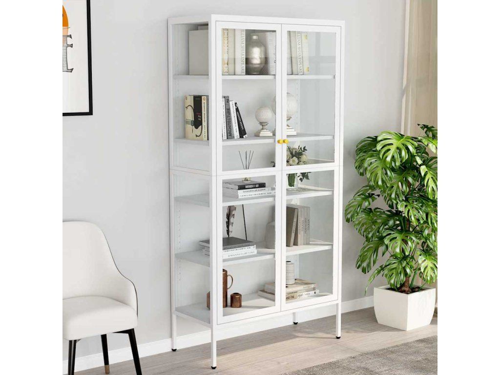Multidom Vitrína biela 90x40x180 cm oceľ a tvrdené sklo