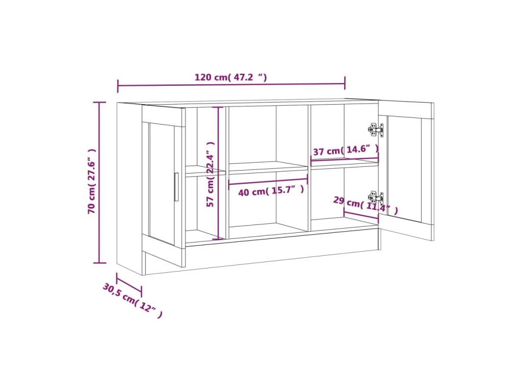 - Rozmery: 120 x 30,5 x 70 cm (Š x H x V)