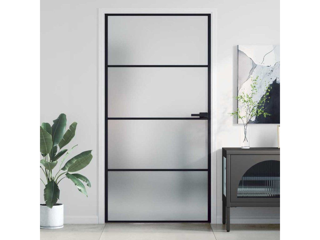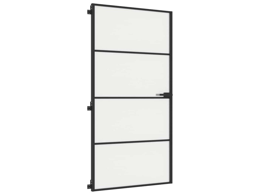 Multidom Vnútorné dvere tenké čierne 102,5x201,5cm tvrdené sklo a hliník