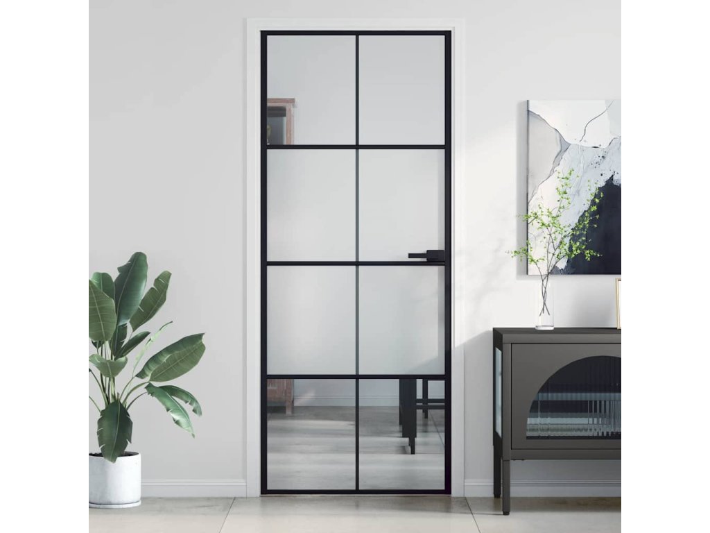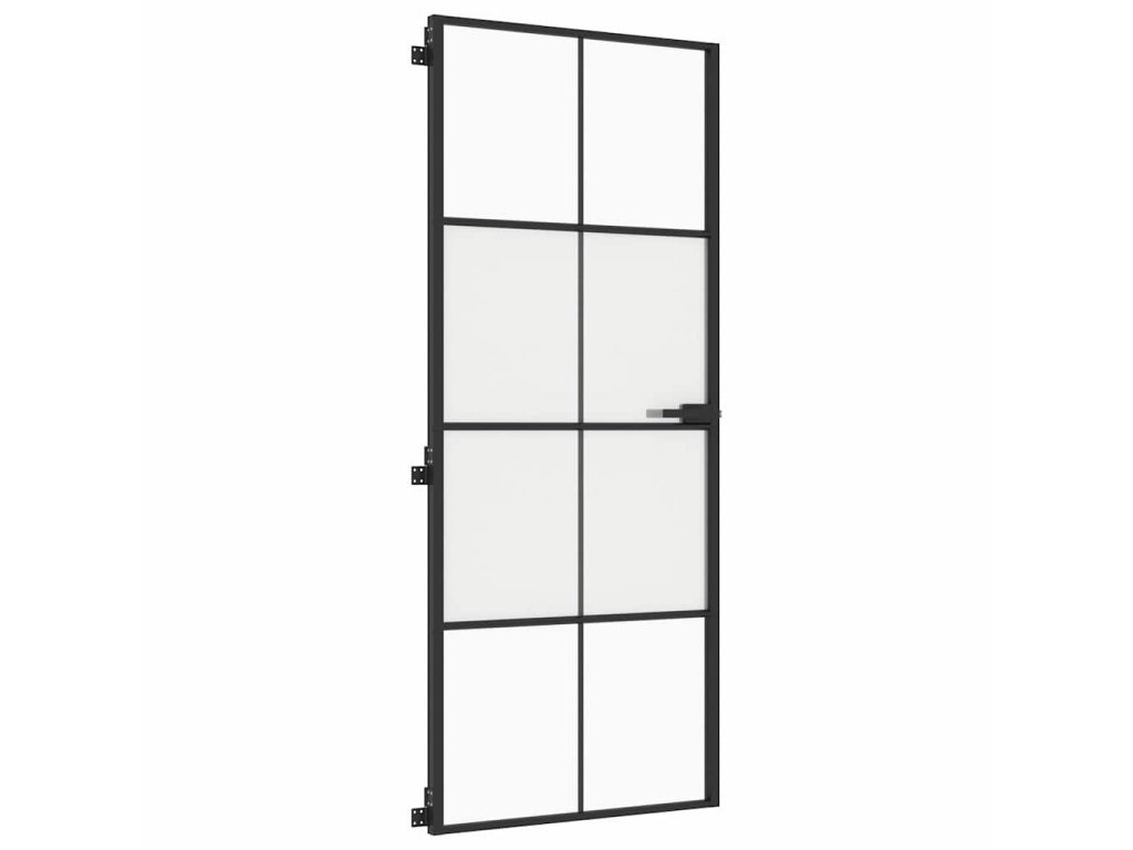Multidom Vnútorné dvere tenké čierne 83x201,5 cm tvrdené sklo a hliník