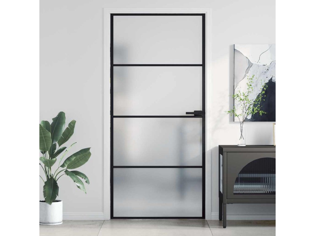 Multidom Vnútorné dvere tenké čierne 93x201,5 cm tvrdené sklo a hliník