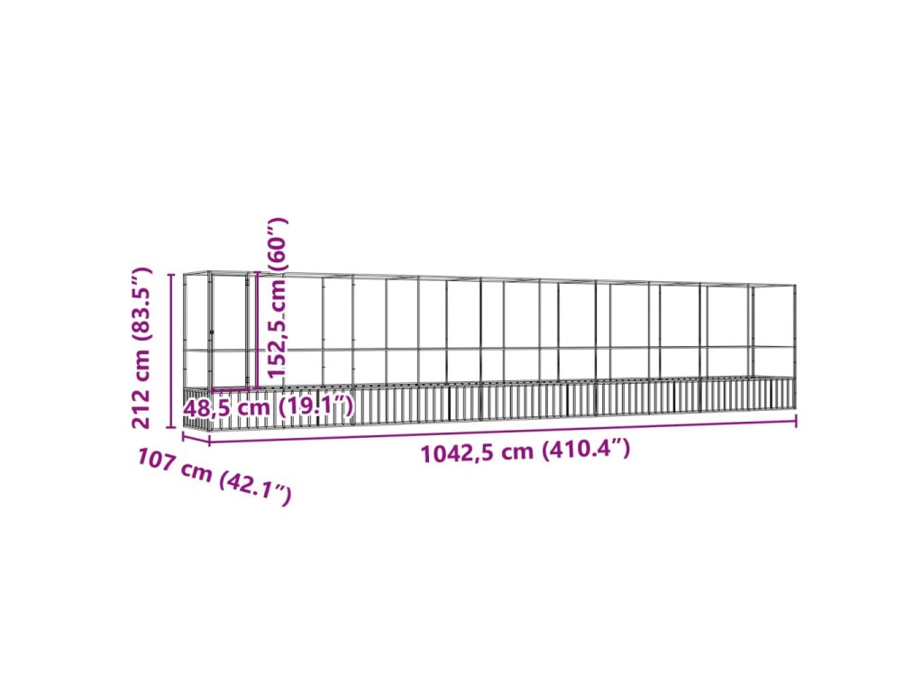 Multidom Voliéra s nadstavcom strieborná 1042,5x107x212 cm oceľ