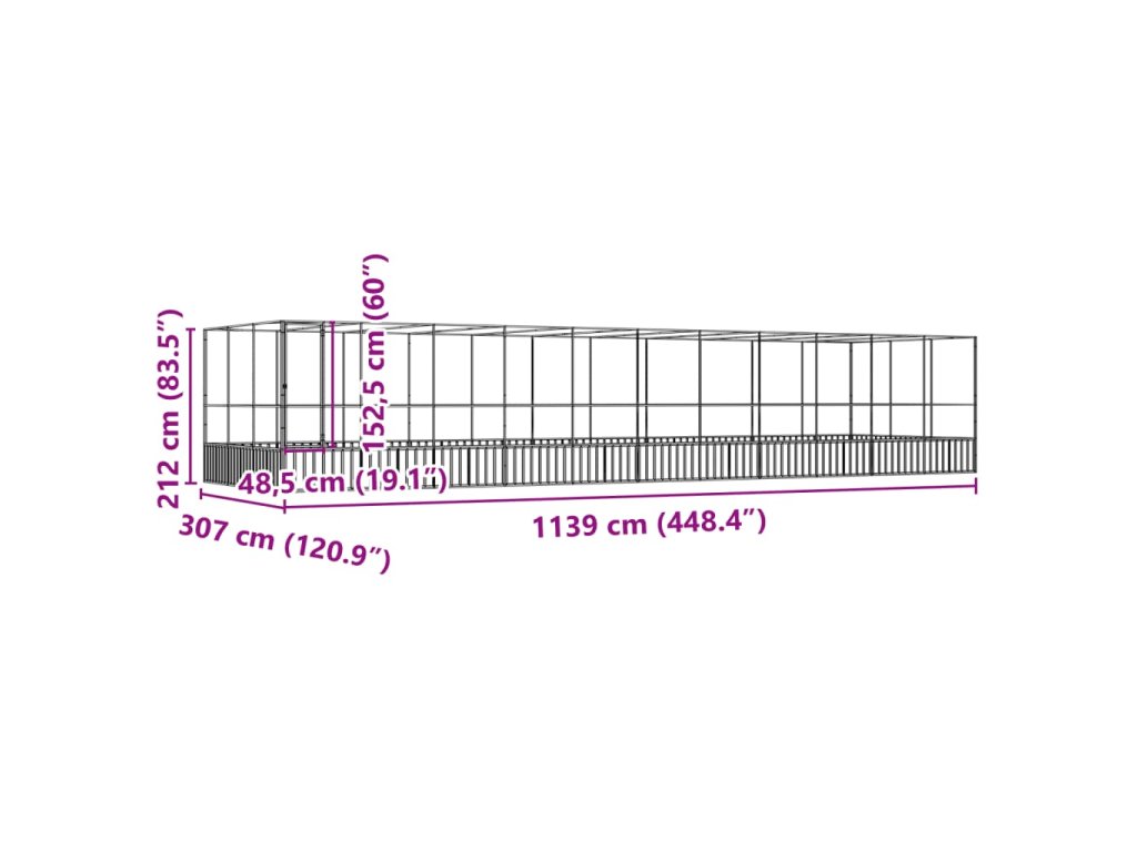Multidom Voliéra s nadstavcom strieborná 1139x307x212 cm oceľ
