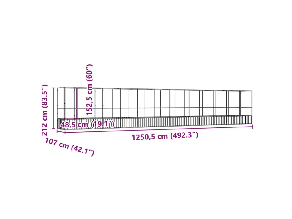 Multidom Voliéra s nadstavcom strieborná 1250,5x107x212 cm oceľ