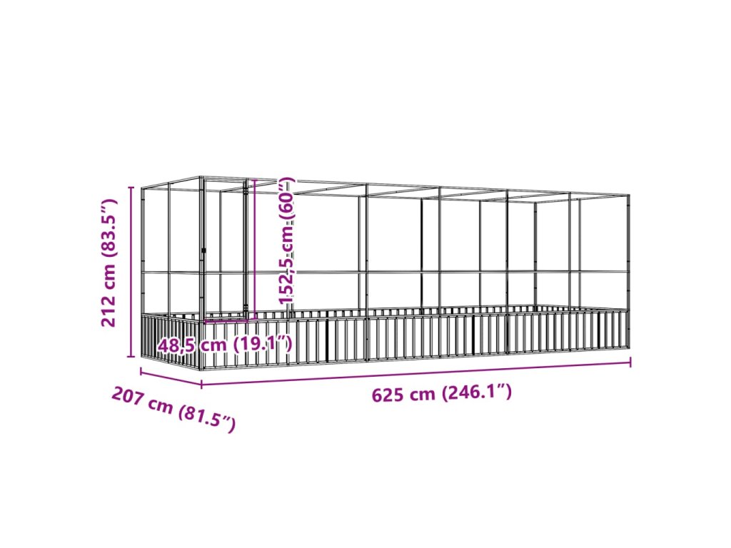 Multidom Voliéra s nadstavcom strieborná 625x207x212 cm oceľ