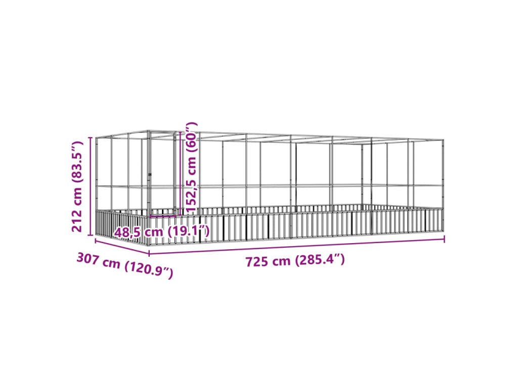 Multidom Voliéra s nadstavcom strieborná 725x307x212 cm oceľ