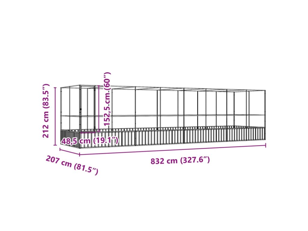 Multidom Voliéra s nadstavcom strieborná 832x207x212 cm oceľ