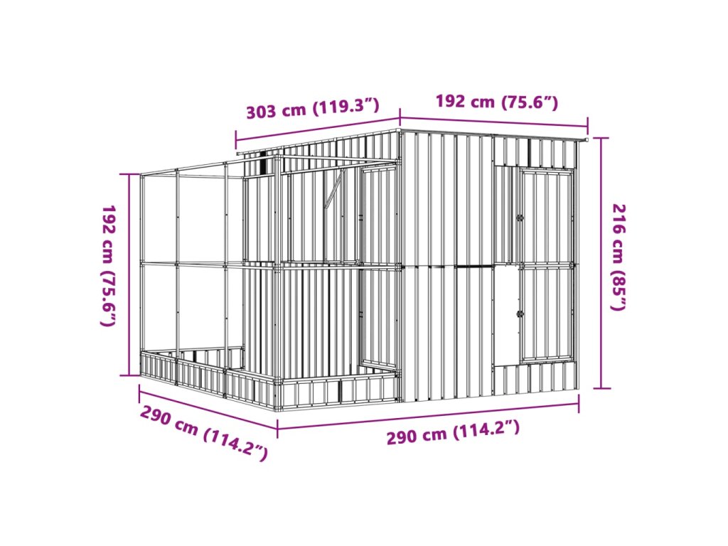 Multidom Voliéra s prístavbou, strieborná, 290x303x216 cm, oceľová