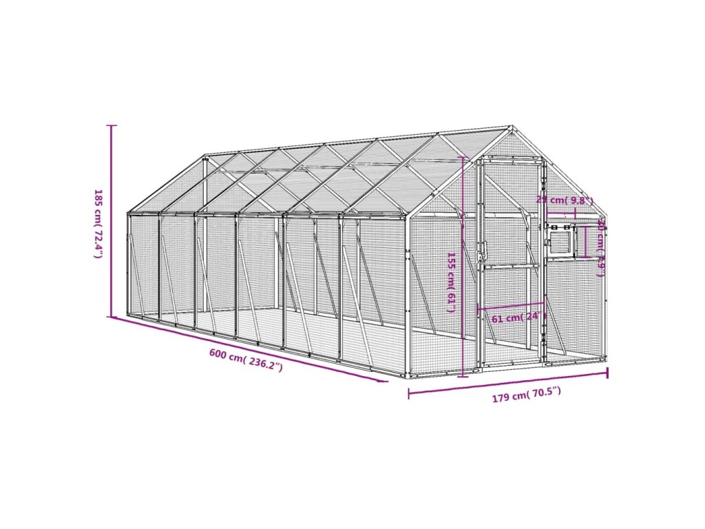 Multidom Voliéra strieborná 1,79x6x1,85 m hliník