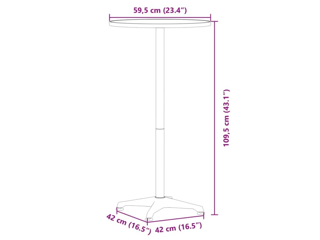 Multidom Vonkajší barový stôl nastaviteľná výška Ø59,5x70/109,5cm hliník