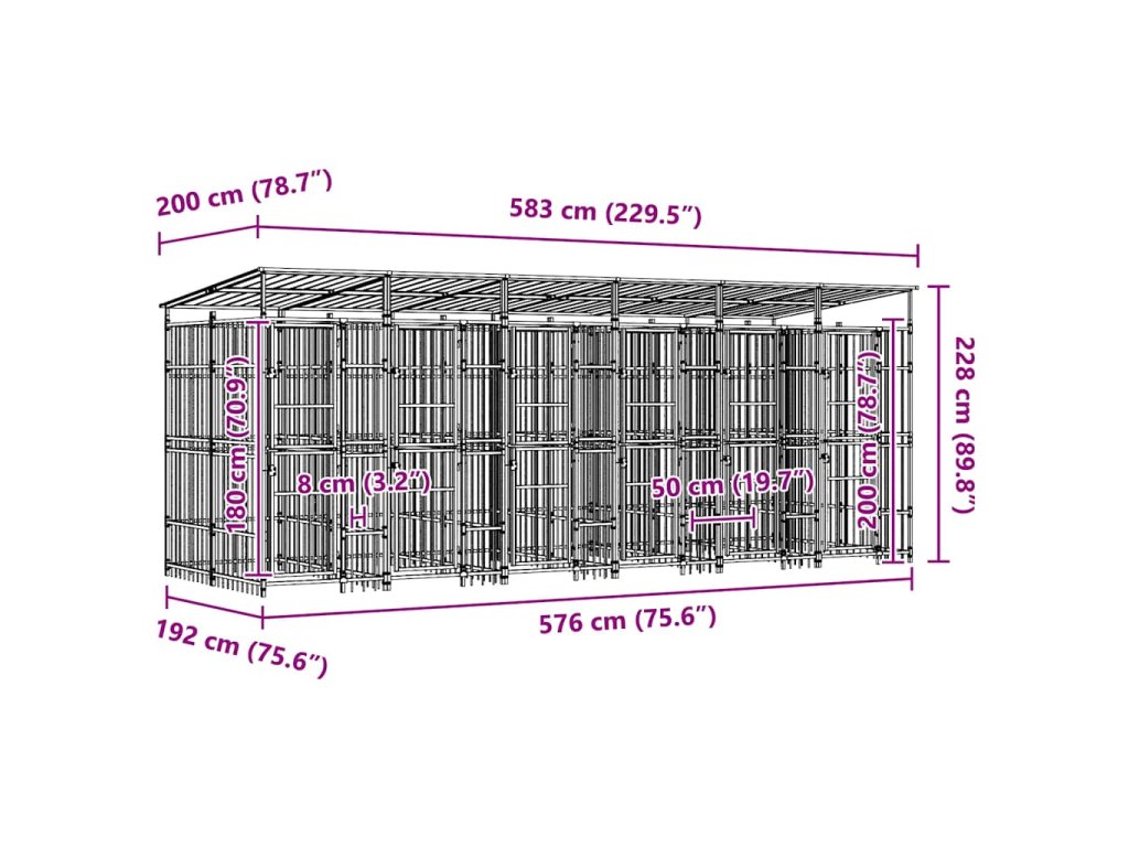 Táto psia búda poskytuje dostatok priestoru na cvičenie. Steny z oceľových tyčí pomáhajú predchádzať nepleche a neočakávaným nehodám a zároveň umožňujú vetranie. Vďaka robustnej oceľovej konštrukcii s práškovým nástrekom je táto psia búda odolná a vyrobená tak, aby vydržala. Strecha poskytuje ochranu pred slnkom, dažďom, snehom, ako aj inými poveternostnými podmienkami. Dvere s pántmi a uzamykateľným západkovým systémom zaisťujú extra bezpečnosť a ochranu vašich psov.