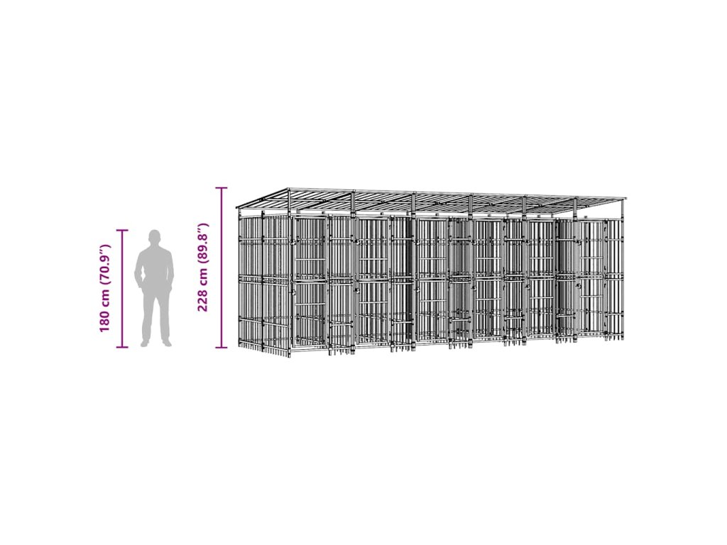 Multidom Vonkajší koterec pre psov so strechou oceľ 11,06 m²