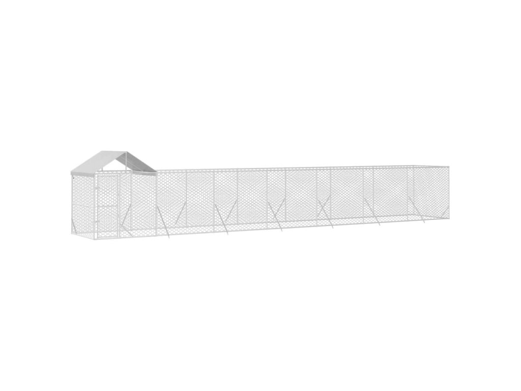 Multidom Vonkajší koterec pre psov so strechou strieborný 14x2x2,5m oceľ
