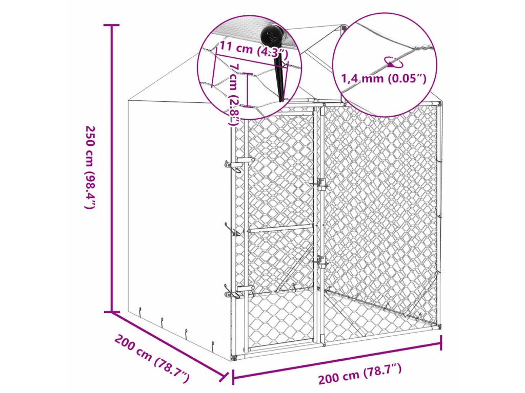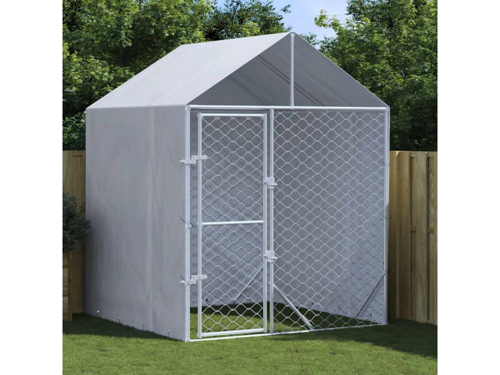 Multidom Vonkajší koterec pre psov so strechou strieborný 2x2x2,5 m oceľ
