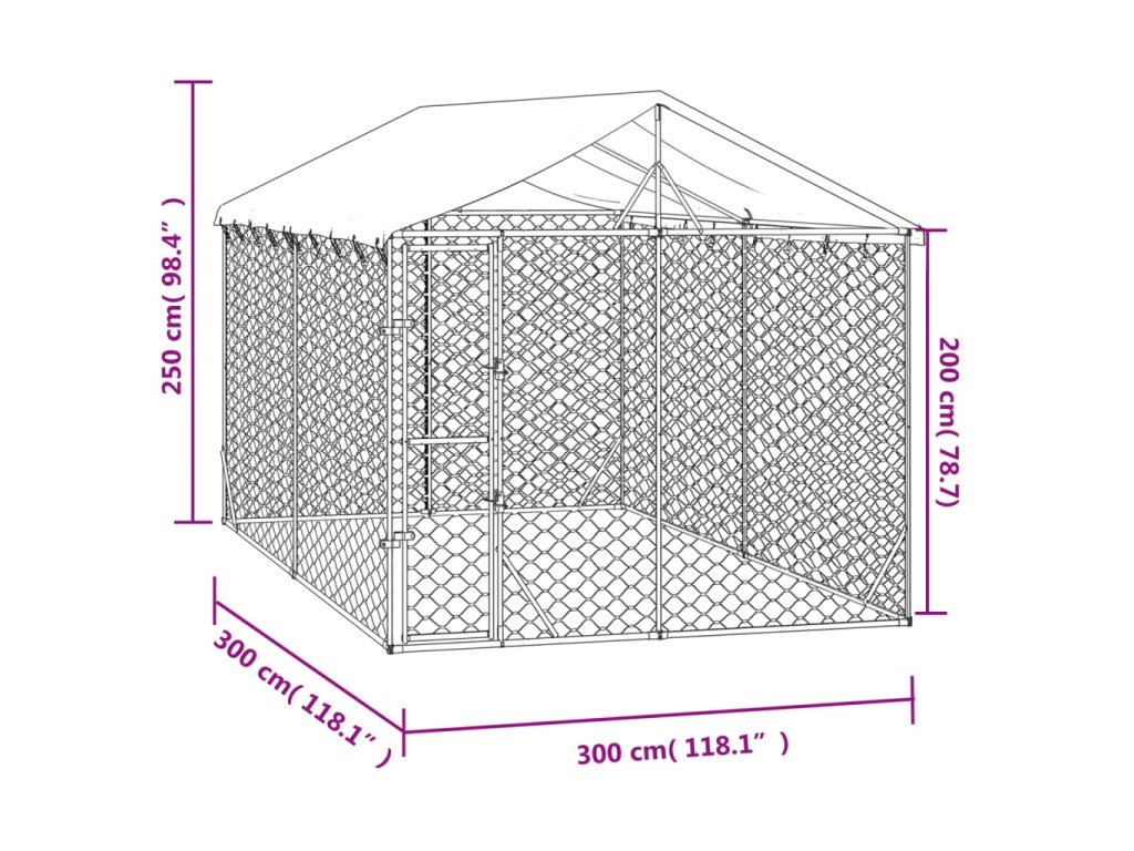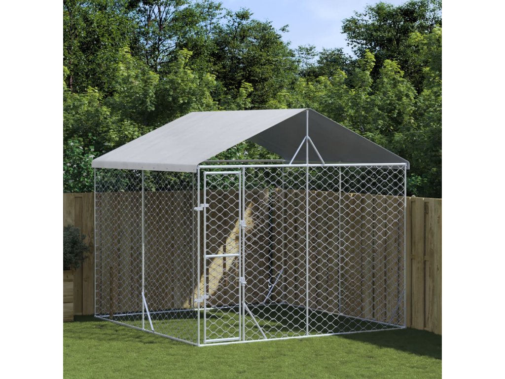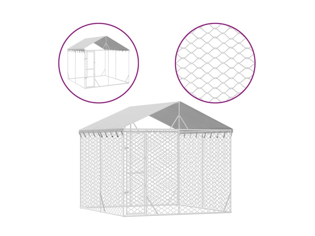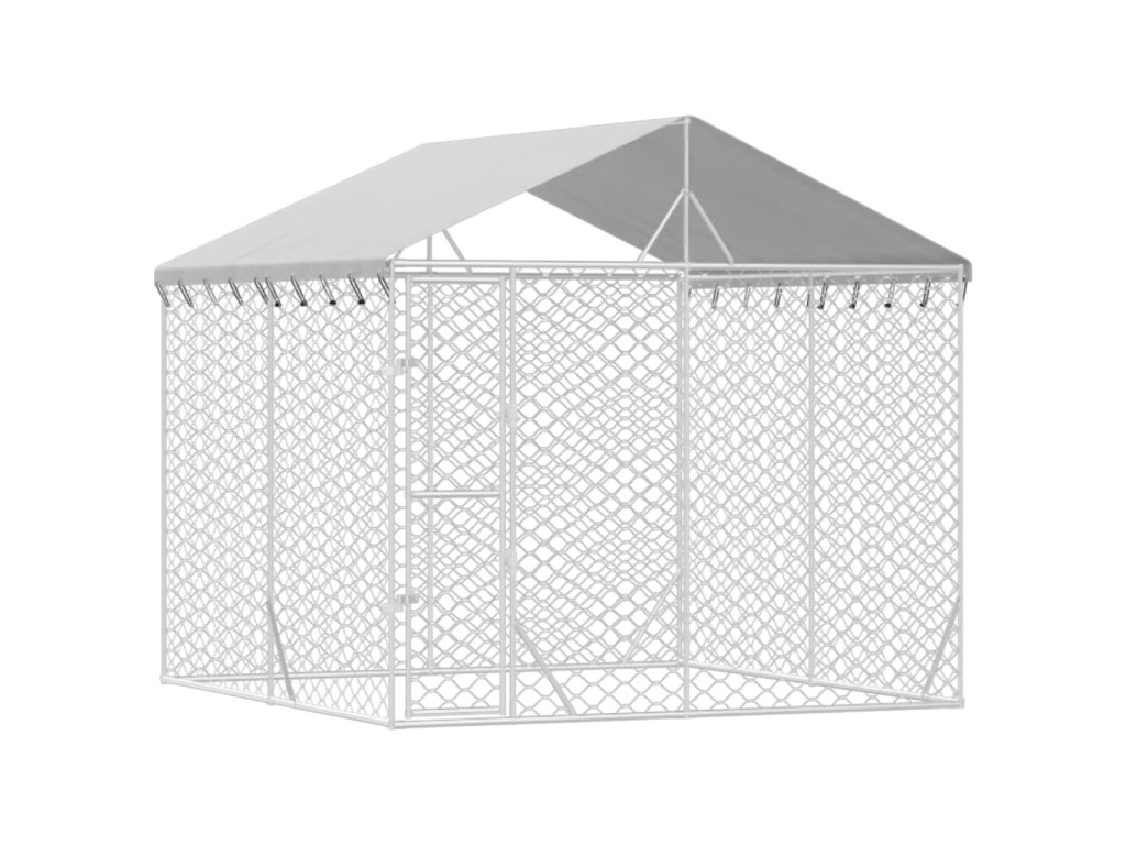 Multidom Vonkajší koterec pre psov so strechou strieborný 3x3x2,5 m oceľ