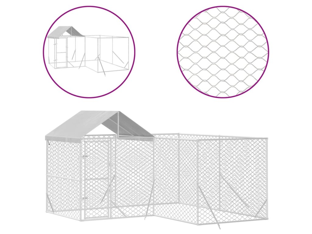 Multidom Vonkajší koterec pre psov so strechou strieborný 4x4x2,5 m oceľ