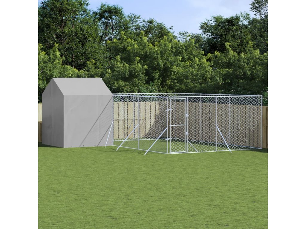 Multidom Vonkajší koterec pre psov so strechou strieborný 6x6x2,5 m oceľ